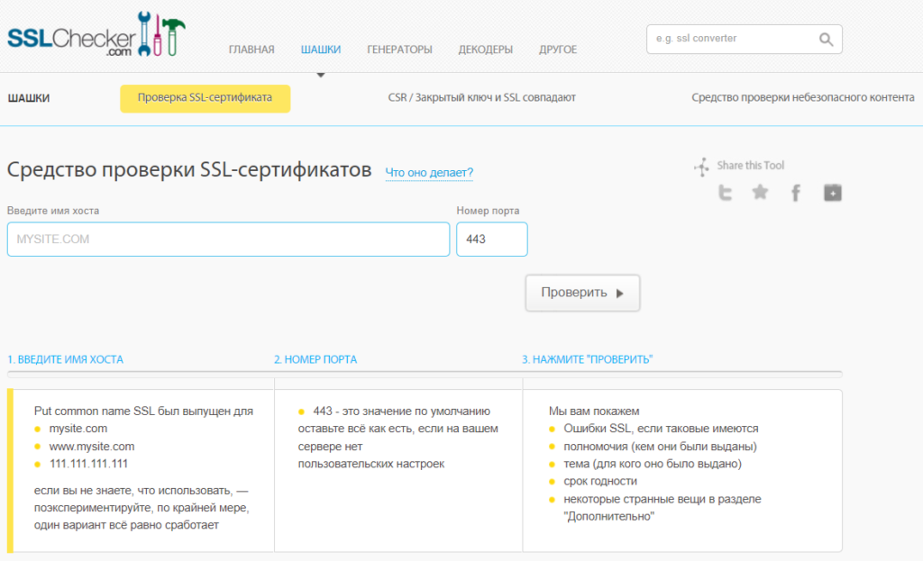 Используйте бесплатные инструменты, которые помогут быстро проверить сертификат и его настройки: